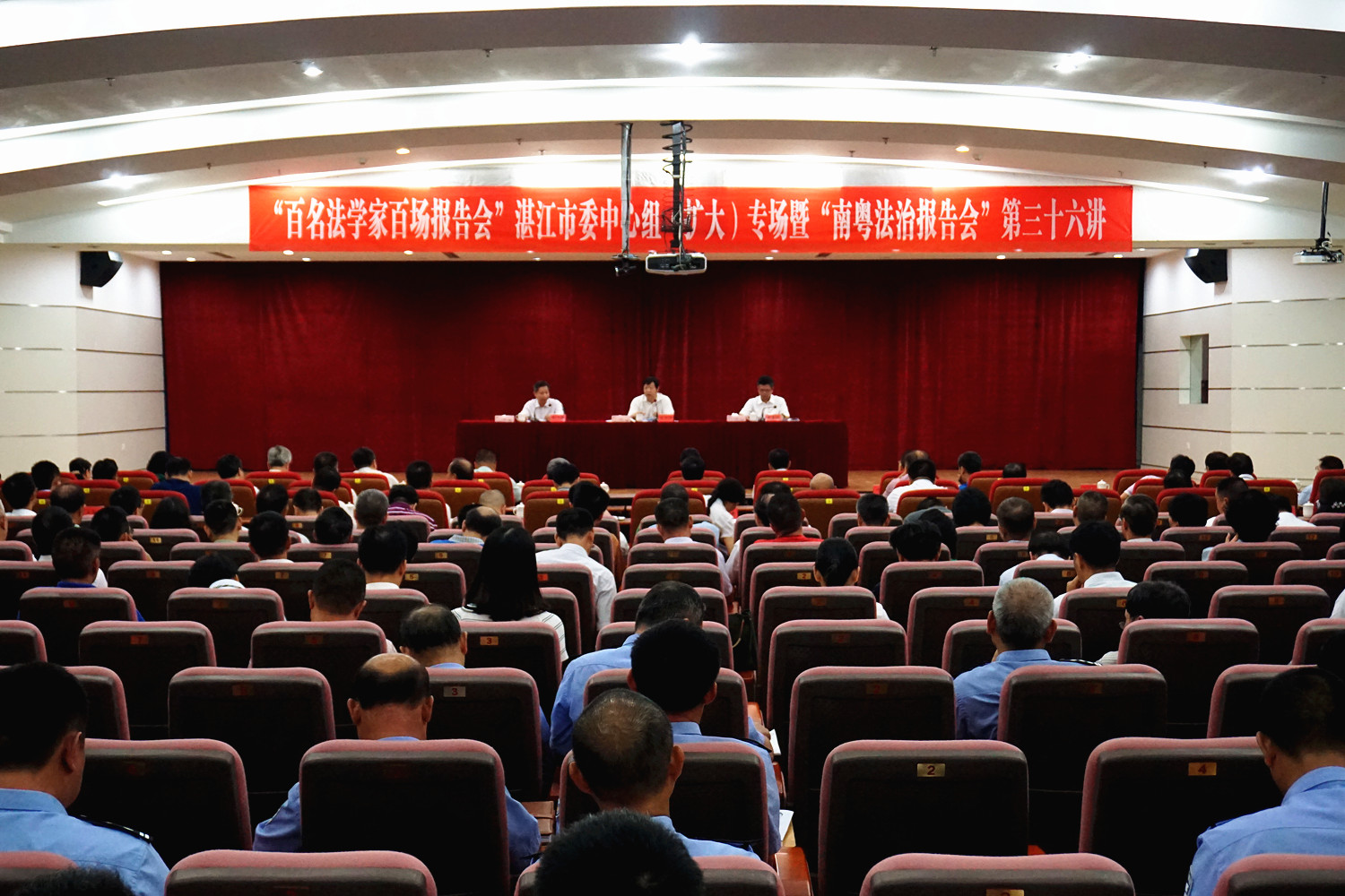 17日上午,“百名法学家百场报告会”湛江市委中心组(扩大)专场暨南粤法治报告会第三十六讲举行