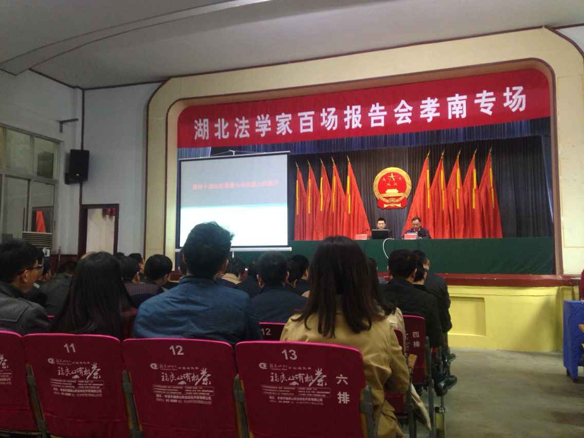 报告会由孝南区长程涛主持。程涛要求全区干部要带头学法用法,大力弘扬法治精神和法治理念,在突出依法治区上下功夫,扎实抓好当前的各项工作。
