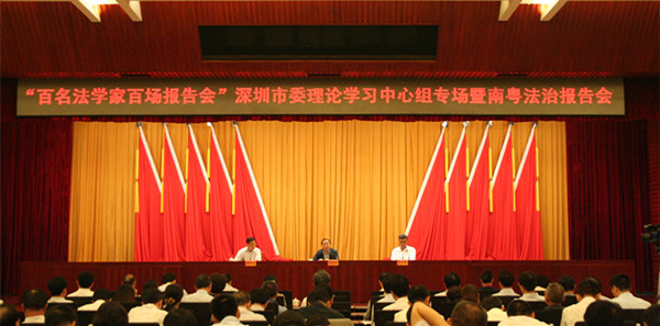 8月13日,广东省2015年“百名法学家百场报告会”深圳市委理论学习中心组专场暨南粤法治报告会在深举行