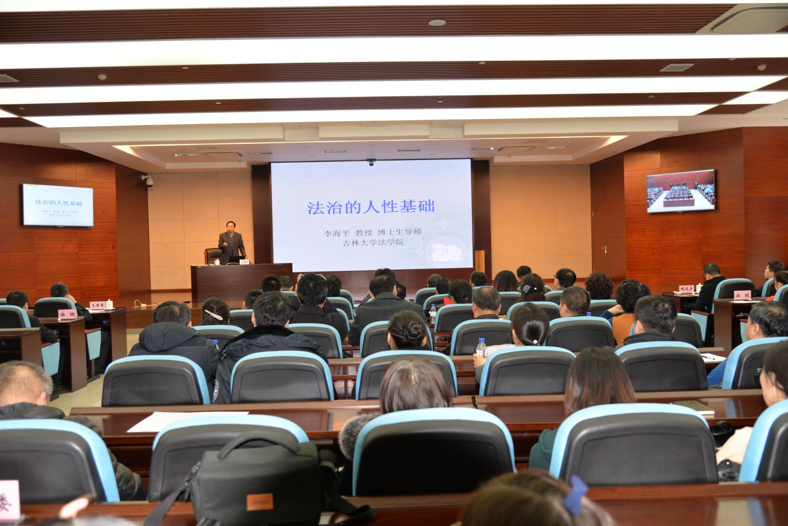 2017年3月2日,长春市委政法委、长春市法学会在长春市中级人民法院十楼会议室举办“双百”法治宣讲活动政法系统专场报告会,邀请吉林大学法学院教授、博士生导师李海平作《法治的人性基础》专题报告。