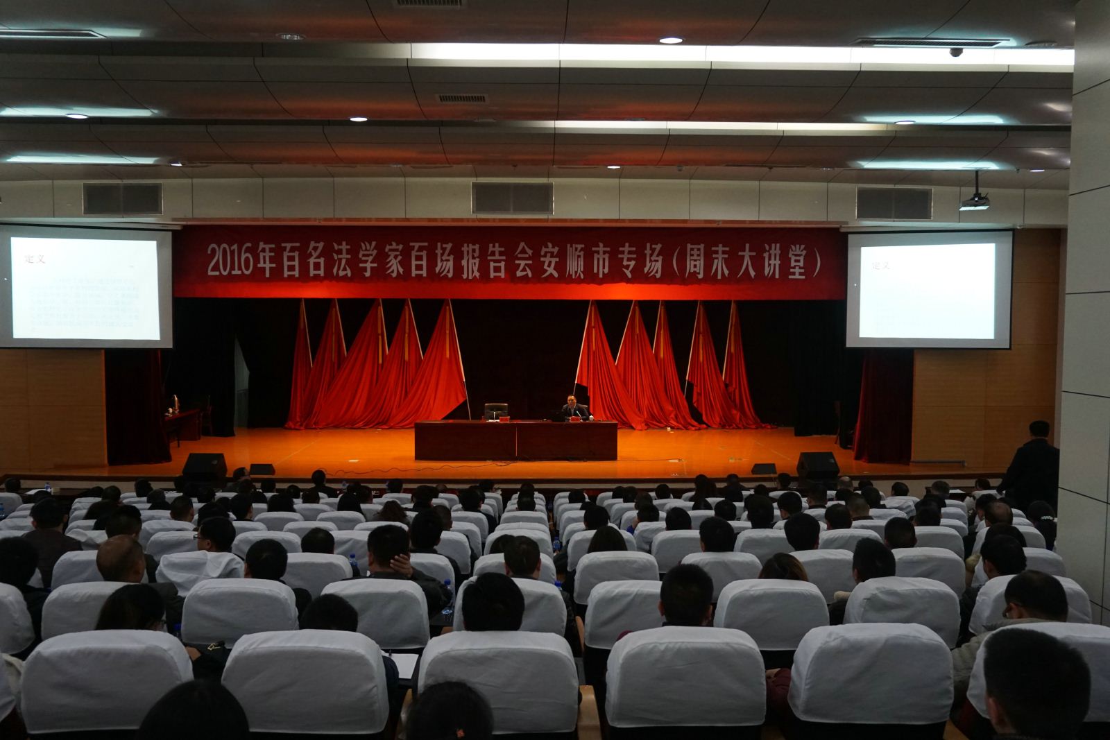 2016年11月25日,贵州省“百名法学家百场报告会”法治宣讲活动安顺市直专场报告会在安顺市公安局会议大厅举行。应安顺市“双百”组委会的要求,省委讲师团电教组组长、贵州博士联盟副秘书长、贵州智慧山地农业发展研究院副院长、教授杨敢作了“农村电子商务与金融服务”的专题报告。报告会由安顺市委政法委副书记刘波主持。