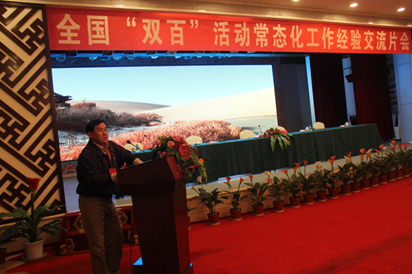 市法学会在组织开展“双百”法治宣讲活动中,始终坚持和突出党委机关领导干部这一重点,主动而为,每年都积极与市委和市委政法委等有关部门联系,从宣讲主题内容的确定、授课人员的选定等进行协商沟通,将“双百”法治宣讲纳入市委和市委政法委理论学习中心组学习内容,并使之成为常态。为系统学习和正确理解党的十八届四中全会精神,在全会刚刚闭幕之际,邀请参与报告起草的中国社会科学院法学研究所副所长莫纪宏研究员,为市委政法委理论中心组和市政法系统领导机关干部、市法学会系统做了2场全面系统的宣讲报告。与会人员普遍反映,通过聆听辅导讲课,学习的方向更加明确了,理解的思路更加清晰了,贯彻落实的决心更加坚定了,听不听辅导大不一样。同时,大家一致认为,作为首都政法系统的领导机关干部,肩负着法治建设的重任,必须走在全国的前列,自觉做到先学一步、学深一步、学精一步,带头贯彻落实四中全会精神,带头遵守和执行宪法法律,带头维护和捍卫法治权威。 2012年10月18日,杜石平副会长在全国“双百”活动常态化工作经验交流会上介绍经验