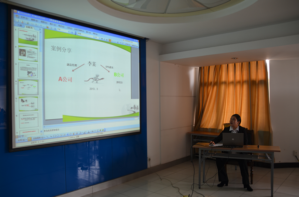 图为市劳动和社会保障法学会秘书长张恒顺作法治宣讲辅导