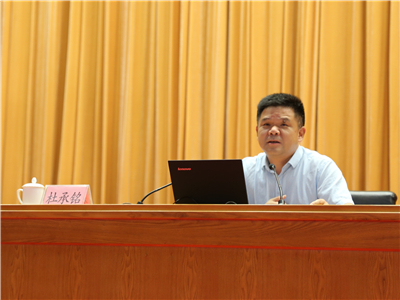9月18日下午,广东省江门市“百名法学家百场报告会”暨市委理论学习中心组专题学习《宪法》报告会在市委市政府大会堂举行。广东省法学会副会长、广东财经大学副校长杜承铭教授受邀到会作辅导报告。江门市委书记、市人大常委会主任林应武,市委副书记、市长刘毅,市政协主席周伟万等市四套班子领导成员及在职厅级干部参加了报告会。市委副书记、政法委书记胡钛主持报告会。