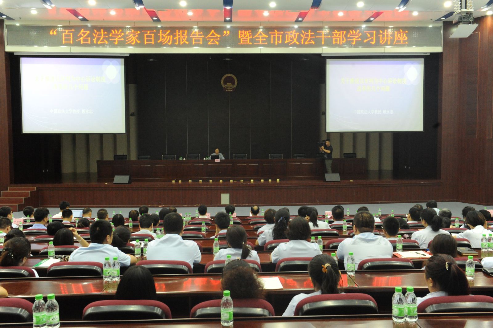 为全面提升政法干部队伍思想政治、纪律作风和履职能力,推进政法干部队伍正规化、专业化、职业化建设,8月25日,大庆市法学会在市中级人民法院大法庭举办“百名法学家百场报告会”暨全市政法干部学习讲座活动(第二讲)。市委政法委、市直政法部门的领导,全市政法干警共320余人参加了报告会。市委政法委秘书长王立涛主持报告会。
