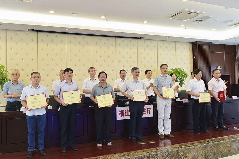 与会领导为福建省宪法宣讲团成员代表颁发证书