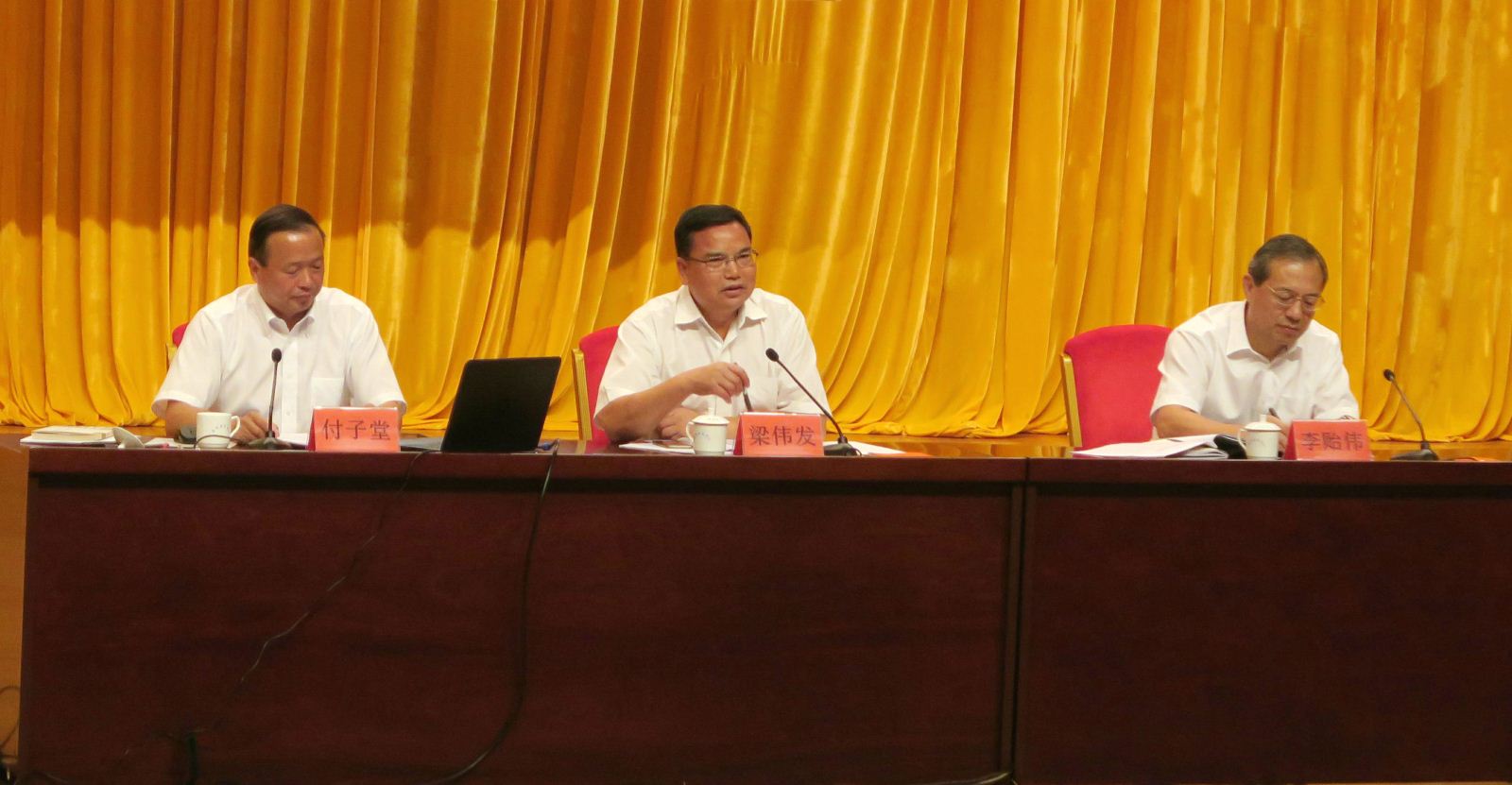 8月13日下午,“百名法学家百场报告会”惠州市委理论学习中心组专场暨南粤法治报告会第四十九讲在广东省惠州市举办。报告会由广东省“双百”活动组委会副主任、 省法学会会长梁伟发主持,西南政法大学党委副书记、校长、教授、博导付子堂应邀作题为“新时代中国特色社会主义宪法制度的新发展”的专题报告,惠州市委书记、市人大常委会主任李贻伟出席报告会并讲话。