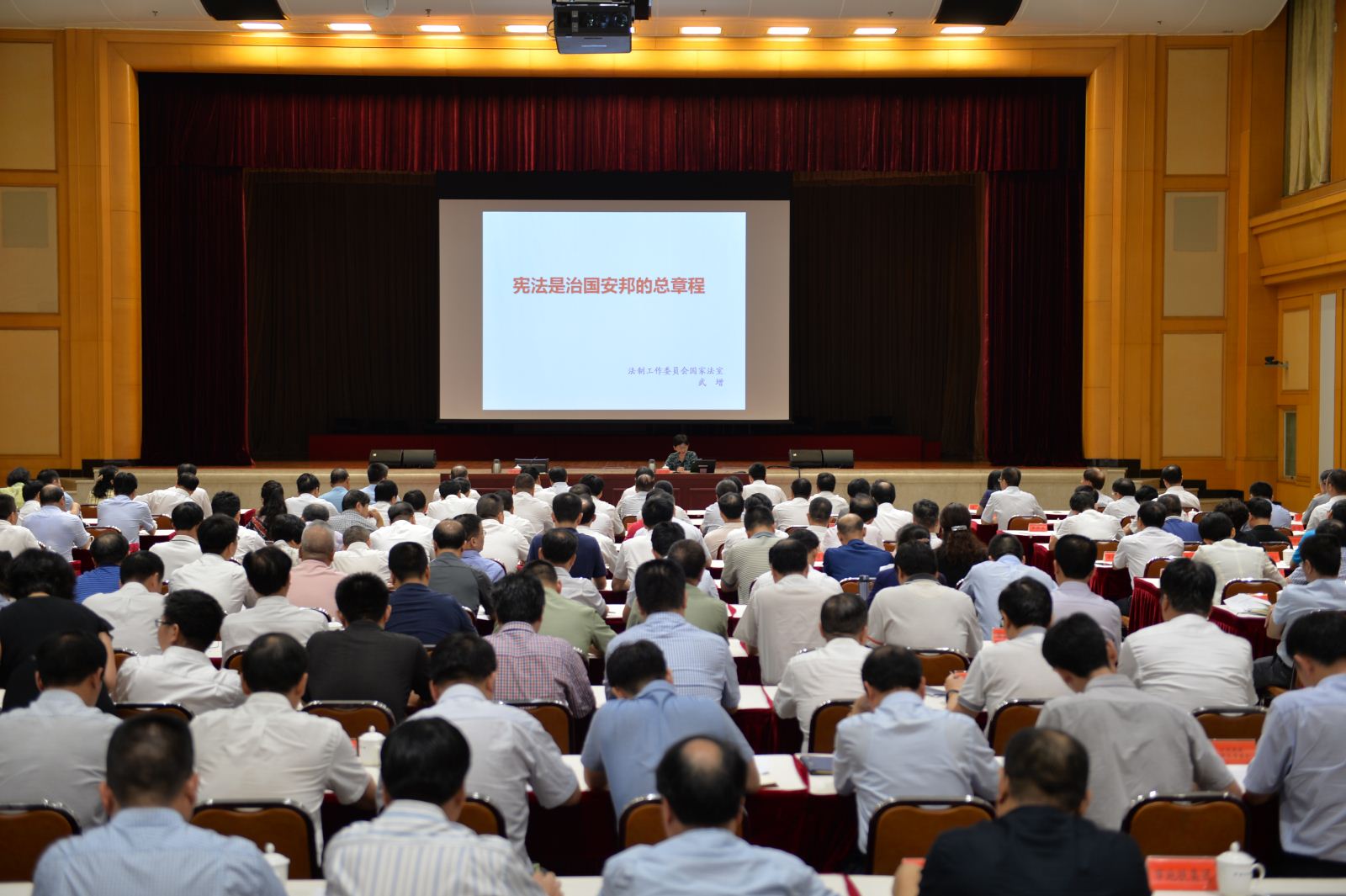 7月20日,福建省福州市市委理论学习中心组举行专题学习会,邀请全国人大常委会法工委国家法室主任武增作《宪法是治国安邦的总章程》专题辅导报告。尤猛军、陈为民、黄忠勇等市领导和福州新区领导,省人大常委会法工委有关领导,各县(市)区、市直部门和市管国有企业主要负责同志等参加会议。市委常委、宣传部长蔡战胜主持学习会。