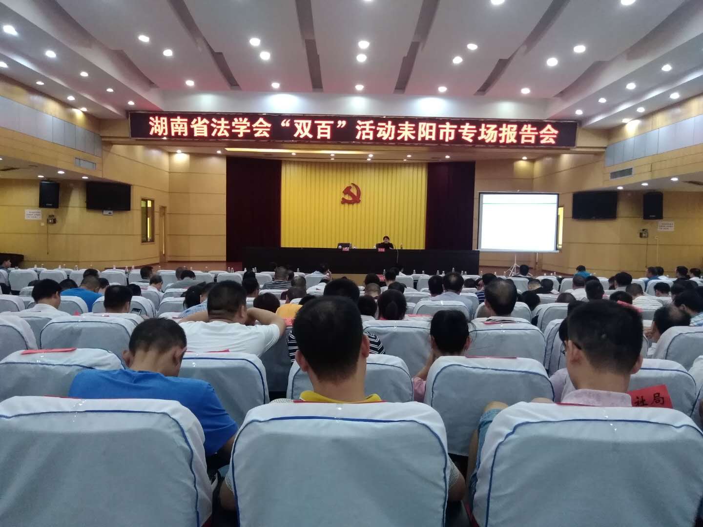7月26日上午,湖南省法学会“双百”活动“法治政府与良法善治”专场报告在耒阳市委会议大厅举行。耒阳市委副书记邱小兵主持会议,湘潭大学法学院、知识产权学院院长肖冬梅作专场报告,衡阳市法学会秘书长邹光耀应邀出席,耒阳市委理论学习中心组全体成员、耒阳市直机关单位与乡镇街道分管政法工作领导、政法系统各单位班子成员及部分宣传干部近300人参加了报告会。