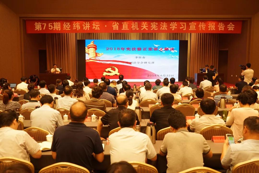 6月22日,由河南省委省直工委、省司法厅、省法学会、省普法办联合主办的省直机关宪法学习宣传报告会在郑州举行。中国法学会研究部主任李仕春教授作了题为《2018年宪法修正案要义解读》的宪法学习专题报告。