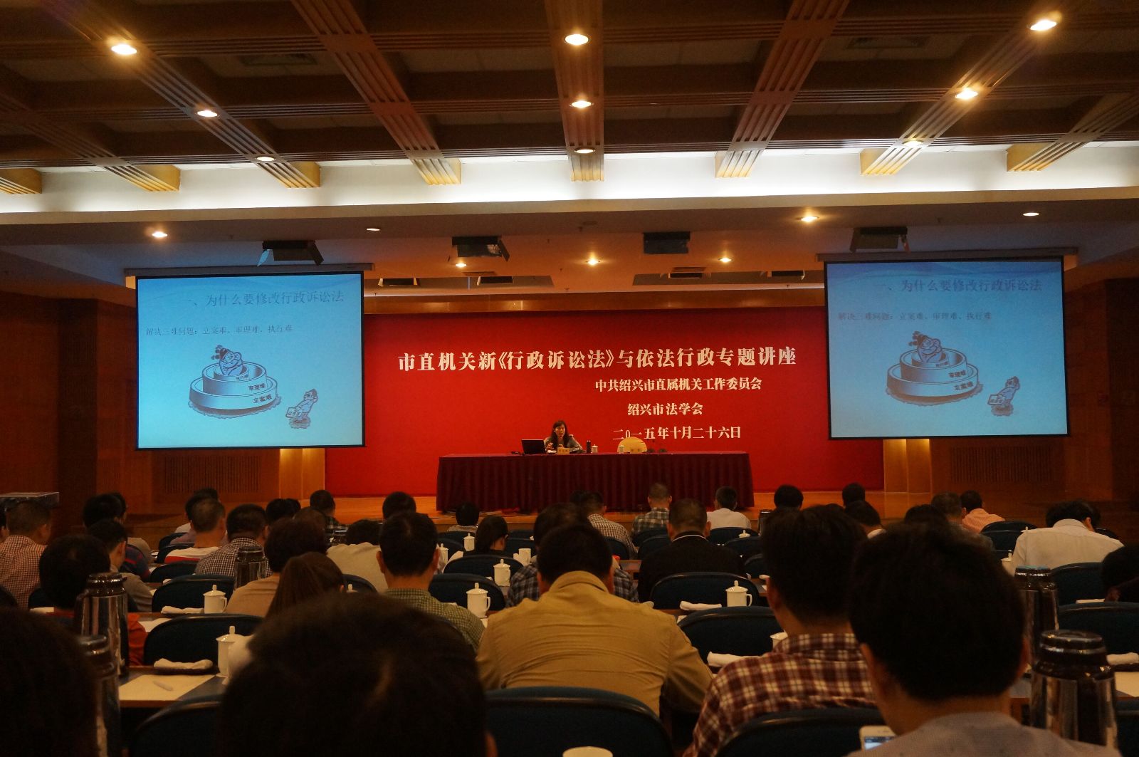 10月26日,绍兴市法学会与市直机关党工委联合举办“2015年浙江省百名法学家百场报告会”绍兴专场活动,邀请中国行政法学研究会理事、浙江工商大学法学院罗文燕教授,为市直机关250名中层以上干部作“新《行政诉讼法》与依法行政”专题辅导报告。