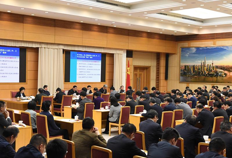 张文显的辅导报告围绕习近平总书记关于宪法的重要论述作了深入解读,就宪法修改的重大意义、总体要求、基本原则和主要内容等作了全面阐释。与会同志联系工作实际交流了学习体会。