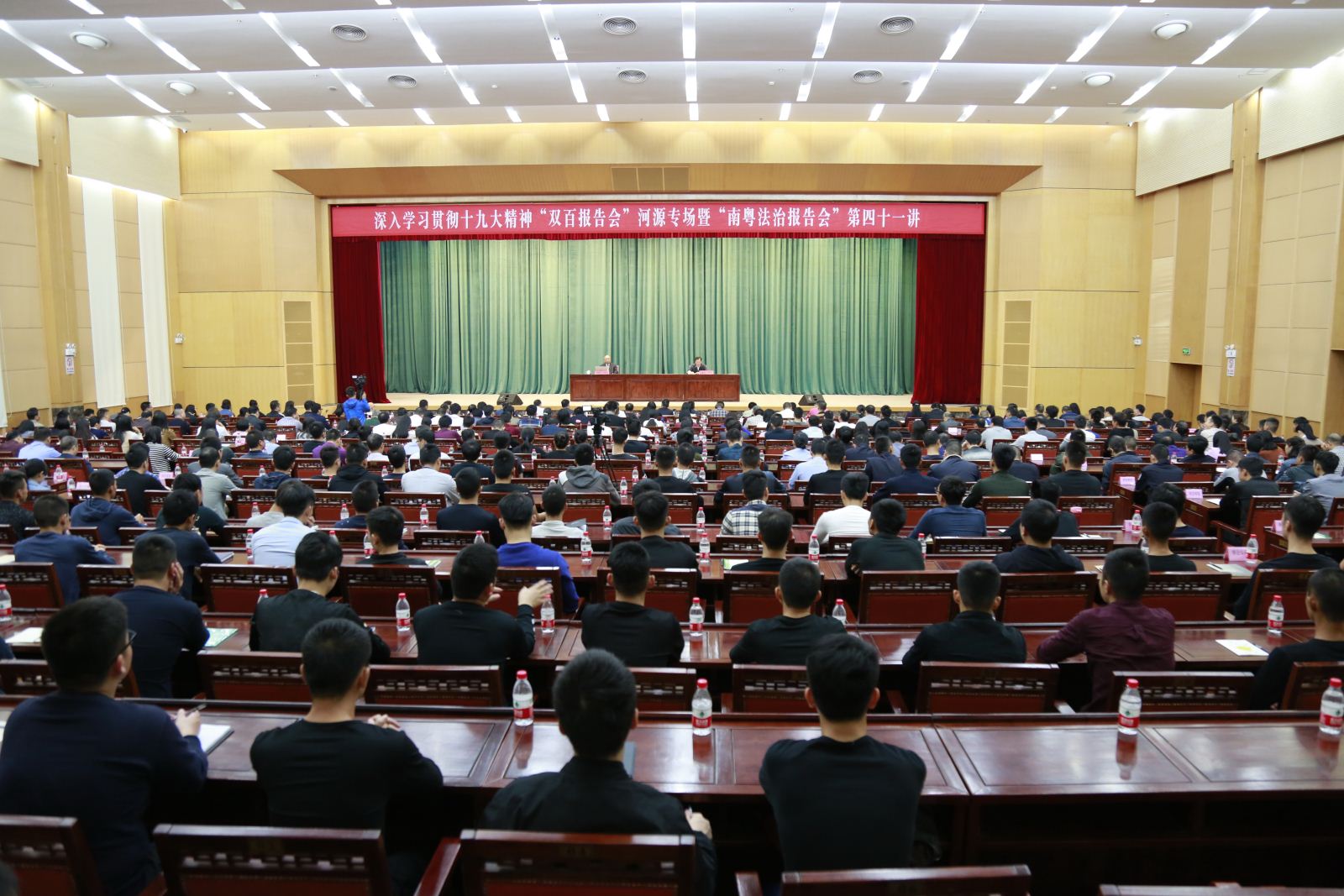 11月8日上午,“百名法学家百场报告会”河源专场暨“南粤法治报告会”第四十一讲在河源市委党校举行。广东省法学会副会长、浙江大学特聘教授葛洪义作主题为《当前基层社会面临的主要法律问题及其解决》的专题报告,河源市委副书记、政法委书记、市法学会会长彭定邦主持报告会并讲话,省法学会副会长梁德标等省“双百”活动报告团同志、河源市政协副主席苏晖,河源市委政法委委员、专职委员,河源市委全面依法治市工作领导小组成员,河源市政法各单位副科以上干部,源城区委政法委分管维稳、综治工作的副书记,各镇(街)分管政法工作的副书记、综治维稳中心主任、派出所所长、司法所所长共450人参加报告会。